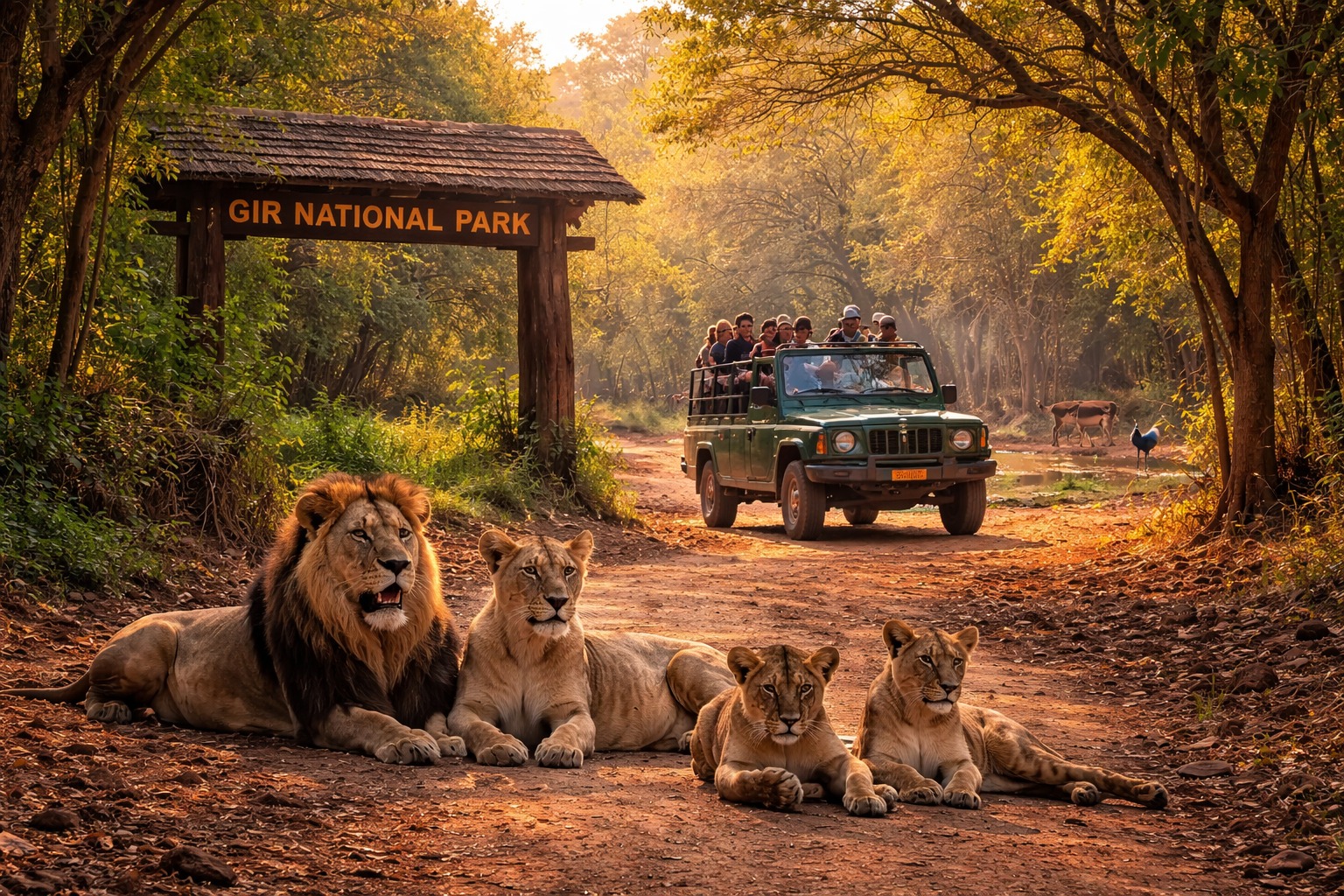At the heart of Sasan Gir lies Gir National Park & Wildlife Sanctuary, the most famous and widely visited of all Sasan Gir attractions. Celebrated worldwide for safeguarding the rare Asiatic Lion in its natural habitat, the park is a premier destination for wildlife lovers and nature enthusiasts.
